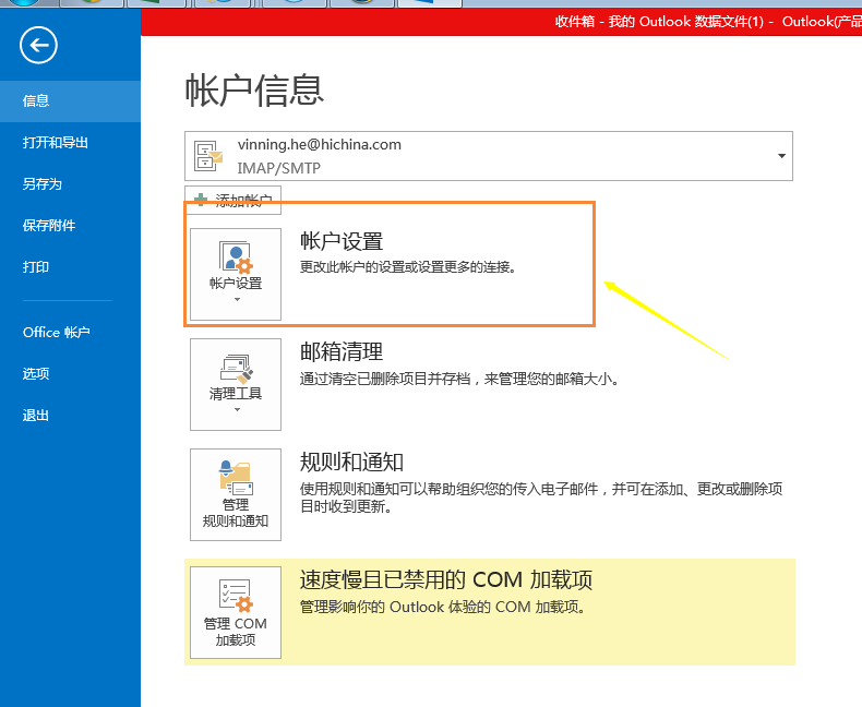 1.打开Outlook。点击“工具”-》“账户设置”:
