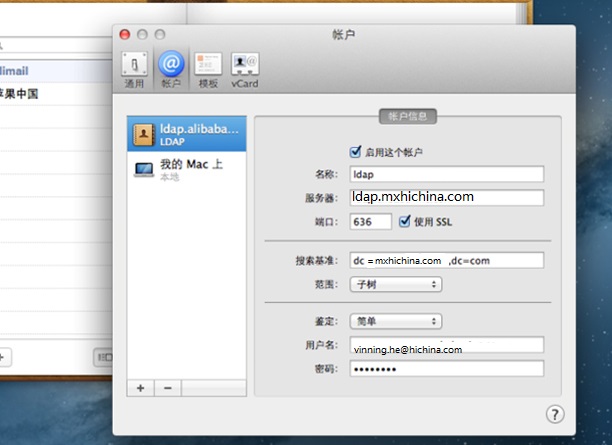mac maill本地通讯录配置(因苹果官方系统bug,当前只支持macOS10.11以下版本,不包括10.11)
